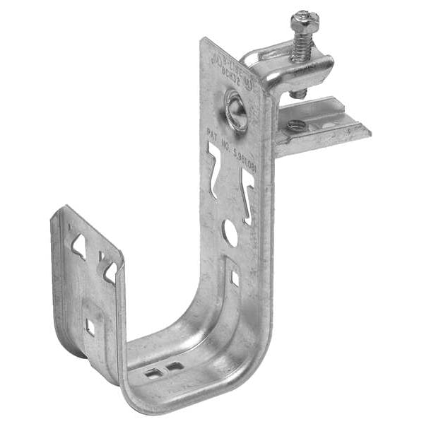 J-Hook, Mounting Location Beam, Color Silver, Max. Load Capacity 30 lb, Max. Bundle Dia. 2 in, Material Galvanized Steel, Clamp On, Flange Thickness 1/8 in to 5/8 in, Includes Locking Latch Yes, Description/Special Features 360 Degrees Horizontal Rotation, Beam Clamp Assembly, Standards cUL, UL