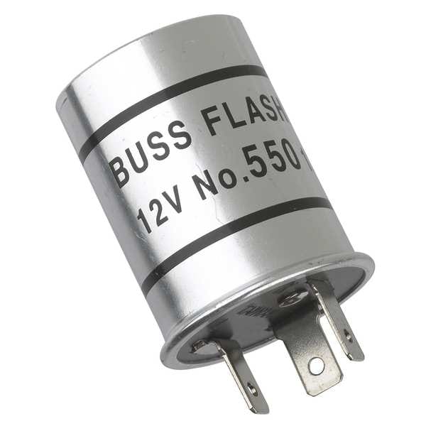 Automotive Flasher, Voltage Rating 12V DC, Flashes per Minute 2 to 6, Number of Connectors 3, Color Silver, Compatible Product Type Passenger Vehicles, Current Rating 12.8 A, Features 3 Terminal, Includes -, Mount Type Plug In, Overall Height 1 1/4 in, Overall Length 2 1/8 in, Overall Width 1 1/4 in, Product Type Flasher Relay, Standards SAE