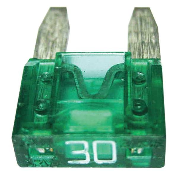 Automotive Fuse, 30 A, Indicating, ATM-ID Series, Not Applicable, 32 V DC, Fast-Acting, Body Material Plastic, Non-Rejection, Body Style Blade, Interrupt Rating 1kA at 32V DC, Color Code Green, Fuse Size 41/64 in L x 7/16 in W x 5/32 in D, Length 41/64 in, Width 7/16 in, Depth 5/32 in, Equivalent Brand and Series Bussmann ATM-ID, Equivalent Series ATM-ID, Single Element, Standards RoHS 2002/95/EC