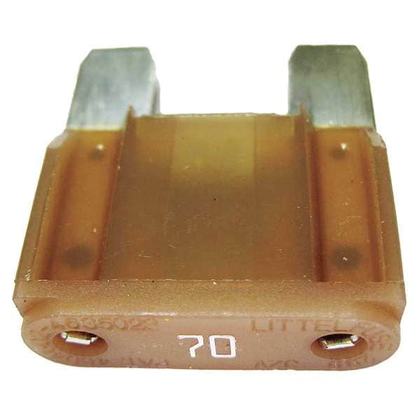 Automotive Fuse, 70 A, Non-Indicating, MAX Series, Not Applicable, 32 V DC, Fast-Acting, Body Material Plastic, Non-Rejection, Body Style Blade, Interrupt Rating 1kA at 32V DC, Color Code Tan, Fuse Size 1-23/64 in L x 1-7/32 in W x 23/64 in D, Length 1 23/64 in, Width 1 7/32 in, Depth 23/64 in, Equivalent Brand and Series Bussmann MAX, Littelfuse 299, Mersen AF3, Equivalent Series 299, AF3, MAX, Single Element, Standards RoHS 2002/95/EC, Compatible Fuse Block Series HHX, MAX