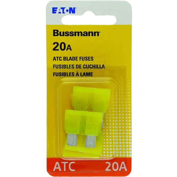 Automotive Fuse Type: ATC Brand Name: Bussmann CSA Listed: Yes Fuse Tester and Puller Included: Maximum Amperage: 20 Number in Package: 5 Packaging Type: Carded Product Type: Blade Fuse UL Listed: Yes Sub Brand: Color: Yellow Voltage Rating: