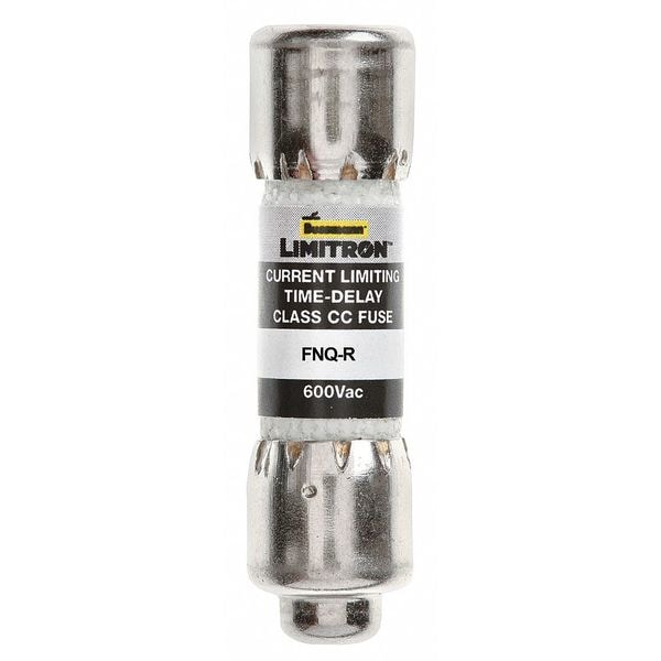 Fuse, 7 1/2 A, 600 V AC, Not Applicable, Class CC, FNQ-R Series, Non-Indicating, Time-Delay, Body Style Cylindrical, Fits Fuse Block Style Rejection, Interrupt Rating 200kA at 600V AC, Fuse Size 1-1/2 in L x 13/32 in dia, Length 1 1/2 in, Diameter 13/32 in, Equivalent Brand and Series Bussmann FNQ-R, Littelfuse KLDR, Mersen ATQR, Equivalent Series ATQR, FNQ-R, KLDR, Compatible Fuse Block Series BCM, BMM, CCP2-X-X-CC, CCP2-X-X-M, CHCC, CHM, HEB, HEX, HEY, HEZ, Body Material Melamine, Dual Element