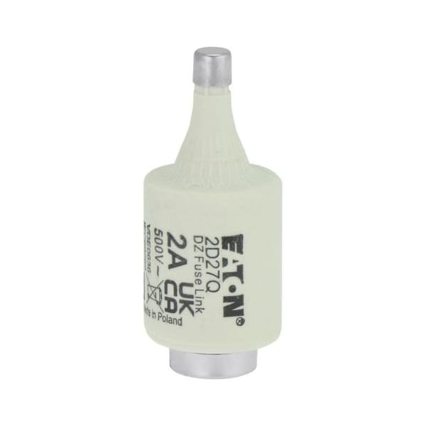 Fuse, 2 A, Non-Indicating, D27 Series, 500 V AC, Not Applicable, Class D, Fast-Acting, Non-Rejection, Body Style Cylindrical, Interrupt Rating 50kA at 500V AC, Fuse Size 2 in L x 27/32 in dia, Length 2 in, Diameter 27/32 in, Equivalent Brand and Series Bussmann D27, Siemens 5SB2, Equivalent Series 5SB2, D27, Body Material Ceramic, Single Element, Standards DIN 49529, IEC 60269