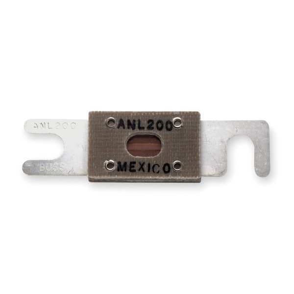 Forklift Limiter Fuse, 200 A, 32 V AC, 80 V DC, ANL Series, Indicating, General Purpose, Body Style Bolt-On, Non-Rejection, Interrupt Rating 2.7kA at 80V DC, 6kA at 32V AC, Fuse Size 3-3/16 in L x 7/8 in dia, Length 3 3/16 in, Width Not Applicable, Depth Not Applicable, Diameter 7/8 in, Equivalent Brand and Series Bussmann ANL, Littelfuse CNL, Mersen CNL, Equivalent Series ANL, CNL, Compatible Fuse Block Series 4164, Body Material Glass, Melamine, Single Element