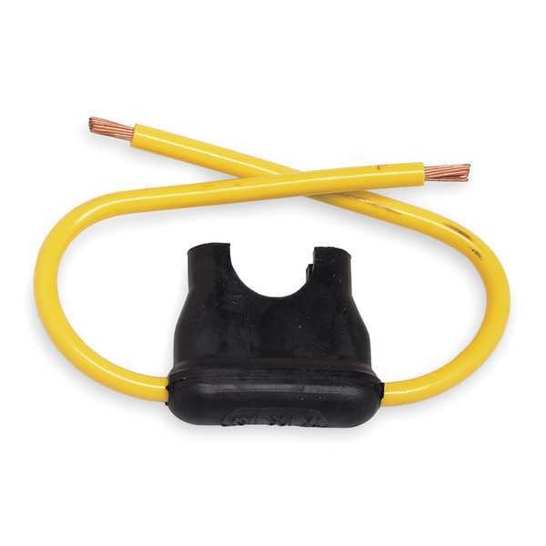 In-Line Fuse Holder, Fits Fuse Type Automotive, Fuse UL Class Not Class Rated, 0 to 30 A, Number of Poles 1, 32V DC, For Fuse Size 3/4 in L x 3/4 in W x 13/64 in D, Compatible Fuse Series 257, AF, ATC, Series HHD, Non-Indicating, Non-Rejection, Fuse Block Design Open, Wire Size 12 AWG, Wire Length (2) 4 in, Mounting Style Inline, Body Material Thermoplastic, Connector Type Wire Leads, Body Height 0.41 in, Body Width 1 in, Body Length 9.75 in