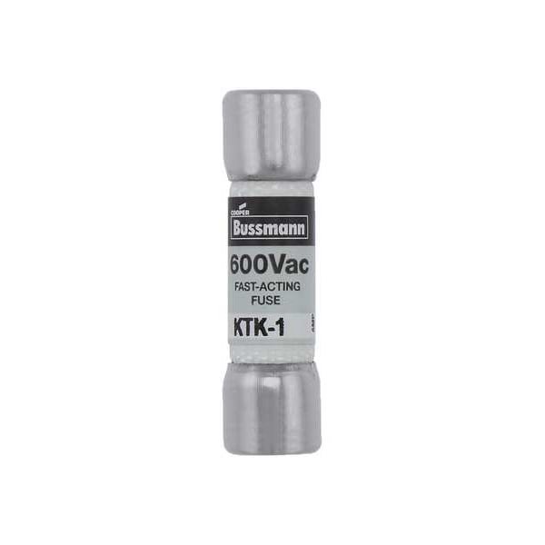 Fuse, 1 A, 600 V AC, Not Applicable, Class Midget, KTK Series, Non-Indicating, Fast-Acting, Body Style Cylindrical, Non-Rejection, Interrupt Rating 100kA at 600V AC, Fuse Size 1-1/2 in L x 13/32 in dia, Length 1 1/2 in, Diameter 13/32 in, Equivalent Brand and Series Bussmann KTK, Littelfuse KLK, Mersen ATM, Equivalent Series ATM, KLK, KTK, Compatible Fuse Block Series BM, BMM, C2617, C5268, CHM, HEB, HET, HEX, HPG, HPS, OPM-1038, OPM-NG, Body Material Melamine, Single Element