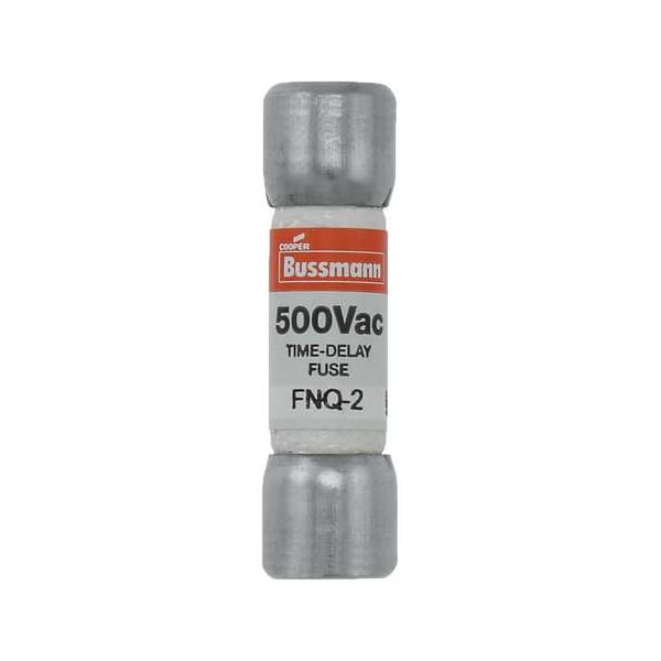 Fuse, 2 A, 500 V AC, Not Applicable, Class Midget, FNQ Series, Non-Indicating, Time-Delay, Body Style Cylindrical, Non-Rejection, Interrupt Rating 10kA at 500V AC, Fuse Size 1-1/2 in L x 13/32 in dia, Length 1 1/2 in, Diameter 13/32 in, Equivalent Brand and Series Bussmann FNQ, Littelfuse FLQ, Mersen ATQ, Power First HC10S, Equivalent Series ATQ, FLQ, FNQ, HC10S, Compatible Fuse Block Series BM, BMM, C2617, C5268, CHM, HEB, HET, HEX, HPG, HPS, OPM-1038, OPM-NG, Body Material Fiberglass