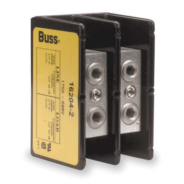 Power Distribution Block, For Conductor Material Aluminum, Copper, Line Connections/Pole 1, Line Side Stud Size Not Applicable, For Line Copper Wire Size - Minimum 14 AWG, For Line Copper Wire Size - Maximum 2/0 AWG, Load Connections/Pole 1, Load Side Stud Size Not Applicable, For Load Copper Wire Size - Minimum 14 AWG, For Load Copper Wire Size - Maximum 2/0 AWG, Maximum Current - Copper Conductor 175 A, Maximum Voltage 600 V, Mounting Type Surface, Number of Poles 2, Overall Depth 1 in