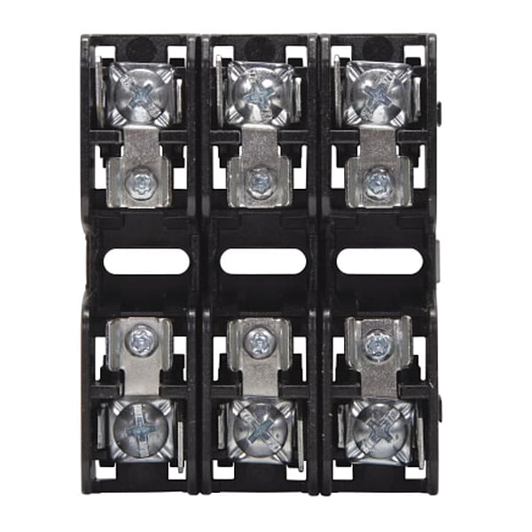 Fuse Block, Fits Fuse Type Midget, Fuse UL Class Midget, 0 to 30 A, Number of Poles 3, 600V AC/300V DC, For Fuse Size 1 1/2 in L x 13/32 in dia, Compatible Fuse Series AGU, ATM, ATQ, BAF, BLF, BLN, FLM, FLQ, FNM, FNQ, GGU, HC10S, KLK, KLKD, KLM, KTK, OTM, TRM, Series BMM, Non-Indicating, Non-Rejection, Fuse Block Design Open, Wire Range 18 to 10 AWG, Mounting Style Bolt-Down, DIN Rail, Body Material Thermoplastic, Connector Type Pressure Plate, Quick Connect, Height 1.3 in, Width 2.4 in