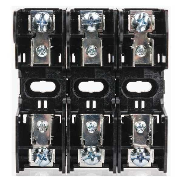Fuse Block, Fits Fuse Type Class H, Class K5, Fuse UL Class H, K5, 0 to 30 A, Number of Poles 3, 250V AC/125V DC, For Fuse Size 2 in L x 9/16 in dia, Compatible Fuse Series NLN, NON, OT, REN, RF, RLN, Series HM, Non-Indicating, Non-Rejection, Fuse Block Design Open, Wire Range 18 to 10 AWG, Mounting Style Bolt-Down, DIN Rail, Body Material Thermoplastic, Connector Type Screw, Height 2 in, Width 2.9 in, Length 3.2 in, Spring Reinforced Clip Yes, Standards CE, CSA Certified, REACH, RoHS, UL Listed