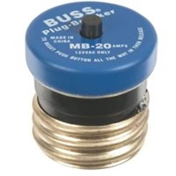 Plug Fuse, 20 A, 125 V, 10 kA Interrupt, Plastic Body, Manual Reset Fuse
