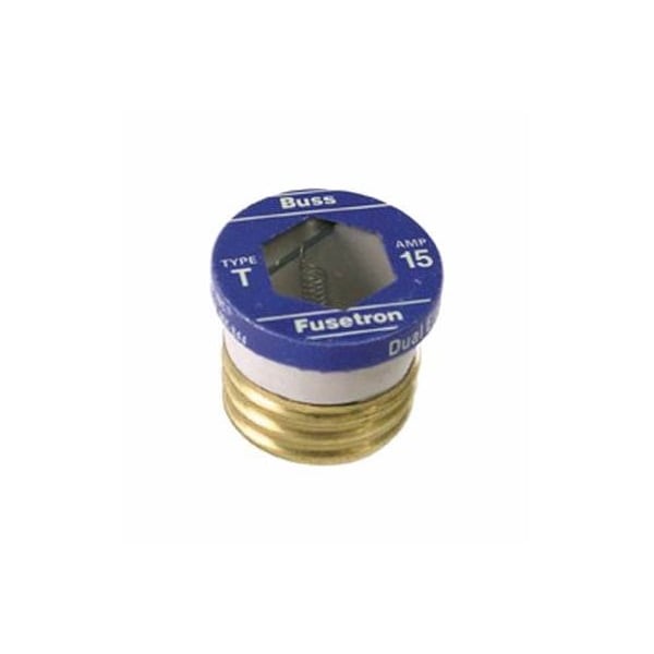 Plug Fuse, T Series, Time-Delay, 15A, 125V AC, Indicating, 10kA at 125V AC