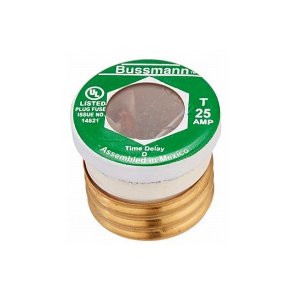 2 Pack, 25A, Type T Plug Fuse, Time Delay Fusetron, Dimensions 275L X 1375W X 0625H, Carded