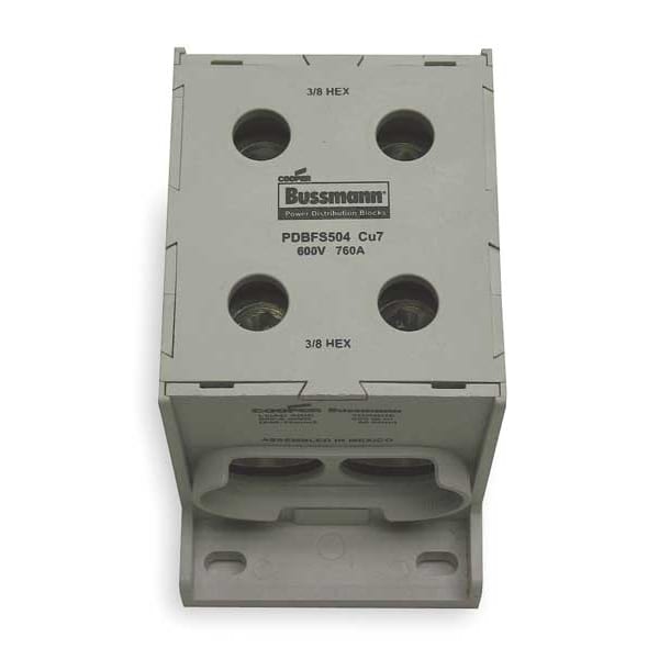 Power Distribution Block, For Conductor Material Aluminum, Copper, Line Connections/Pole 2, Line Side Stud Size Not Applicable, For Line Copper Wire Size - Minimum 6 AWG, For Line Copper Wire Size - Maximum 500 kcmil, Load Connections/Pole 2, Load Side Stud Size Not Applicable, For Load Copper Wire Size - Minimum 6 AWG, For Load Copper Wire Size - Maximum 500 kcmil, Maximum Current - Copper Conductor 760 A, Maximum Voltage 600 V, Mounting Type Surface, Number of Poles 1, Overall Depth 3 in
