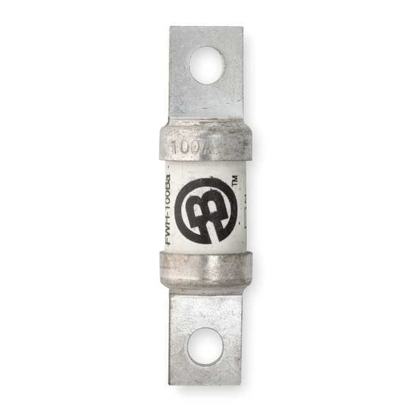Semiconductor Fuse, 100 A, 500 V AC, 500 V DC, FWH Series, Non-Indicating, Fast-Acting, Body Style Bolt-On, Non-Rejection, Interrupt Rating 200kA at 500V AC, 50kA at 500V DC, Fuse Size 3-5/8 in L x 15/16 in dia, Length 3 5/8 in, Diameter 15/16 in, Equivalent Brand and Series A50QS, Bussmann FWH, Littelfuse L50S, Mersen A50P, Equivalent Series A50P, A50QS, FWH, L50S, Compatible Fuse Block Series 1BS, Body Material Fiberglass, Single Element, Standards CE, CSA Certified, UL Recognized