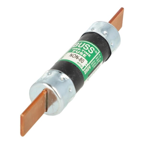 Eaton Bussmann Series Class K5 fuse, NON, general purpose, non-current-limiting fuses, 80 A, one-time fuse, interrupting rating of 10 kA at 250 Vac and 10 kA at 125 Vdc. Basic Protection 250Vac (NON) and 600Vac (NOS), 1/8a -600A General Purpose One-time fuses