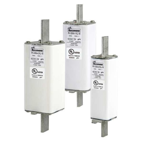 Solar Fuse, 200 A, Not Applicable, 1.5 kV DC, Class gPV, PV-1XL Series, Non-Indicating, Fast-Acting, Body Style Bolt-On, Non-Rejection, Interrupt Rating 30kA at 1500V DC, Fuse Size 7-5/32 in L x 2 in dia, Length 7 5/32 in, Diameter 2 in, Equivalent Brand and Series Bussmann PV-1XL, Equivalent Series PV-1XL, Body Material Ceramic, Single Element, Standards E335324, IEEC 60269-6, UL 2579