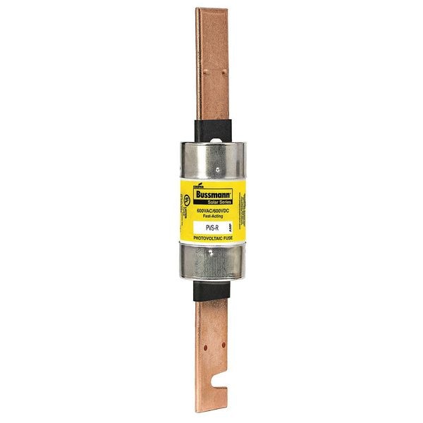 Solar Fuse, 250 A, 600 V AC, 600 V DC, Class RK5, PVS-R Series, Non-Indicating, Fast-Acting, Body Style Cylindrical, Rejection, Interrupt Rating 10kA at 600V DC, 200kA at 600V AC, Fuse Size 11-5/8 in L x 2-3/8 in dia, Length 11 5/8 in, Diameter 2 3/8 in, Equivalent Brand and Series Bussmann PVS-R, Equivalent Series PVS-R, Body Material Fiberglass, Single Element, Standards CSA Component Certified C22.2, File E335324, Guide JFGA, Photovoltaic to UL 2579, UL Std. 248-12, ClasUL Listed