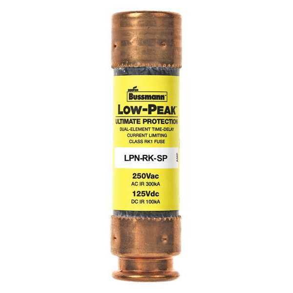 Fuse, 35 A, 250 V AC, 125 V DC, Class RK1, LPN-RK-SP Series, Non-Indicating, Time-Delay, Body Style Cylindrical, Fits Fuse Block Style Rejection, Interrupt Rating 100kA at 125V DC, 300kA at 250V AC, Fuse Size 3 in L x 13/16 in dia, Length 3 in, Diameter 13/16 in, Equivalent Brand and Series Bussmann LPN-RK-SP, Littelfuse LLNRK, Mersen A2D-R, Equivalent Series A2D-R, LLNRK, LPN-RK-SP, Compatible Fuse Block Series HM250, RM250, Body Material Melamine, Dual Element