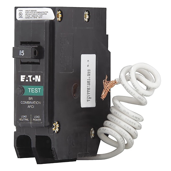 Circuit Breaker, Amps 15 A, AC Voltage Rating 120V AC, Circuit Breaker Type Arc Fault Circuit Interrupter, Number of Poles 1, DC Voltage Rating Not Rated, Circuit Breaker Actuator Toggle, Circuit Breaker Mounting Style Plug In, Compatible Panelboard/Load Center Series BR, Phase Single, Series BR, Max. AIR Rating 10kA at 120V AC, For Use With Type BR Loadcenters, Length 6 in, Width 1 in, Depth 1.25 in, Min. Wire Size 14 AWG, Max. Wire Size 8 AWG, Standards UL Listed