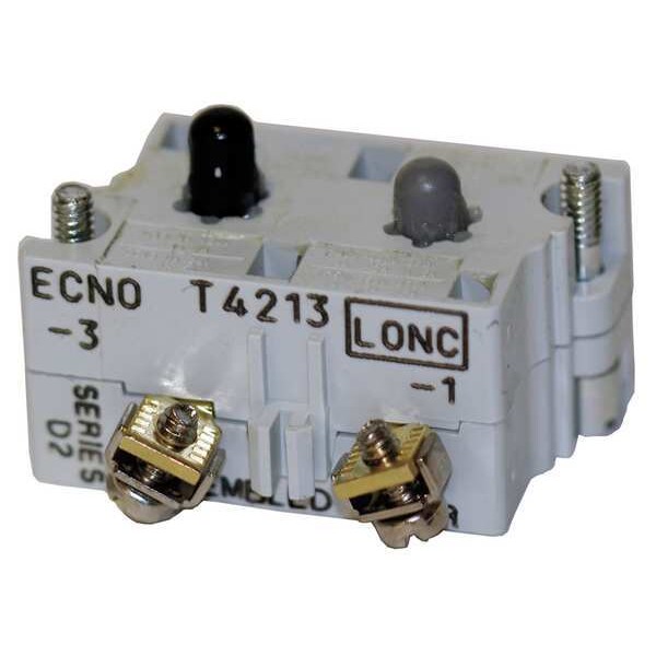 Contact Block, Contact Form 1NO Early Close/1NC Late Open, Contact Rating 10A @ 660V AC/DC, For Use With Eaton 10250T 30mm Push Buttons and Indicating Lights, Action Momentary/Make Before Break, 30 mm, Application Operator, NEMA Contact Rating Designation A600/P600, Color Black, Terminal Connection Pressure Terminal, Standards CE, CSA, UL Listed