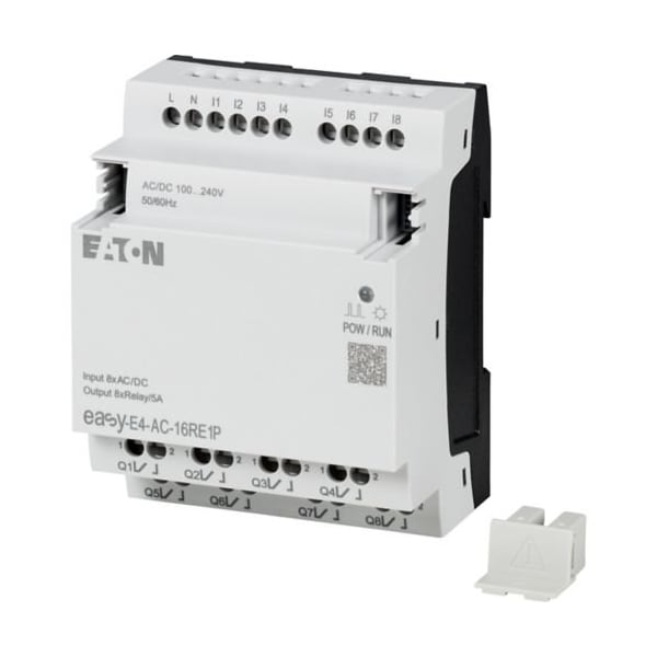 Controller, Width 3.1 in, Depth 2.3 in, Number of Inputs 8, For Use With Easy E4 Control Relays, Number of Outputs 8, Power Required 24 V, Height 4.3 in, Product Type Input/Output Module, Wire Connection Type Screw Clamp
