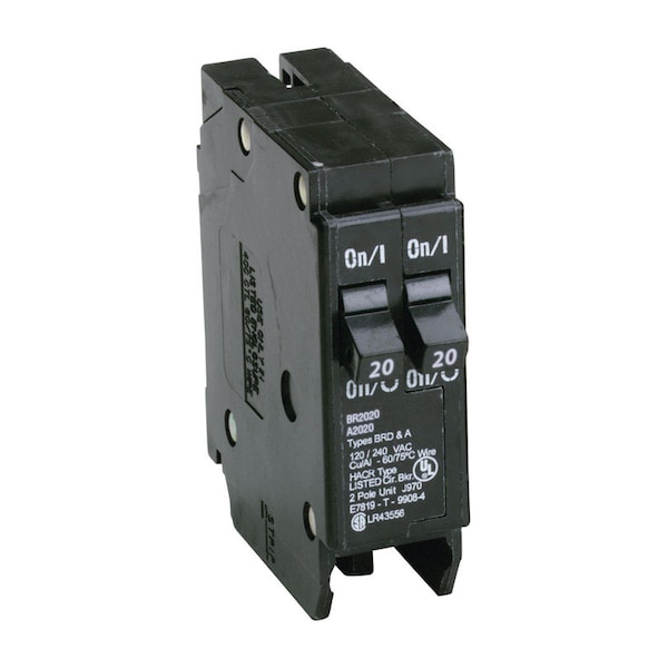 Circuit breakers protect the wires in your home from overheating (referred to as an overload) and fault currents (referred to as short circuits). The Eaton Cutler-Hammer 20/20 amp 1 inch duplex type BR circuit breaker is also known as tandem breaker. Tandem breakers are convenient for adding circuits to a full load center and are sometimes used to reduce the physical size of the load center. This a non-circuit limiting breaker. The BR tandem line of breakers is intended for replacement purposes on load centers made prior to 1968.