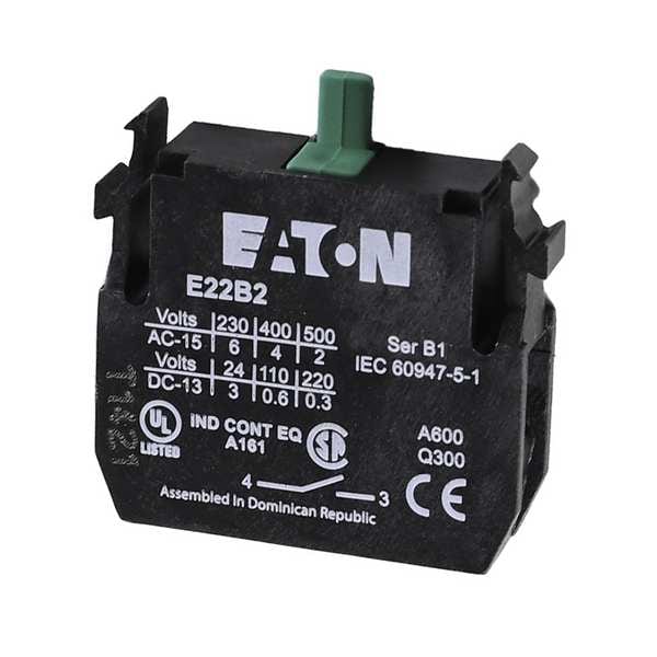 Contact Block, Contact Form 1NO, NEMA Contact Rating Designation Not Applicable, Color Black, Standards CE, CSA, IEC 947-5-1 MTTA, Lloyd's Register, UL 508