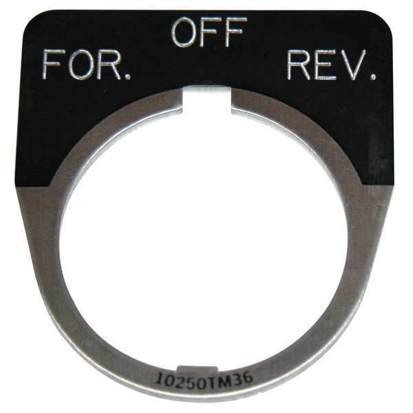 Legend Plate, Half-Round, Legend For-Off-Rev, For Use With 30.5mm Selector Switch and Roto-Push Operators, Legend/Background Color Black, Material Aluminum, Height 1.75 in, Width 1.75 in, Diameter 30 mm