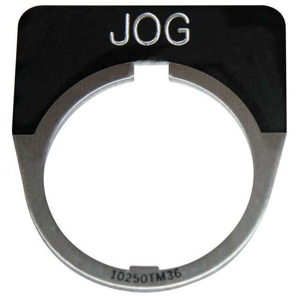 Legend Plate, Half-Round, Legend Jog, For Use With 30.5mm Pushbutton Operators and Indicating Lights, Legend/Background Color Black, Material Aluminum, Height 1.75 in, Width 1.75 in, Diameter 30 mm