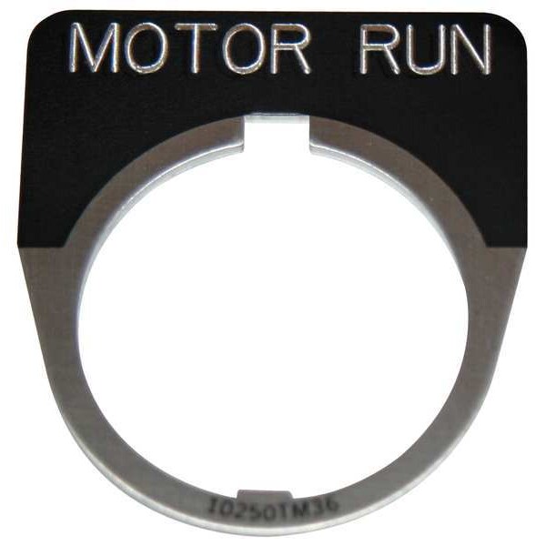 Legend Plate, Half-Round, Legend Motor Run, For Use With 30.5mm Pushbutton Operators and Indicating Lights, Legend/Background Color Black, Material Aluminum, Height 1.75 in, Width 1.75 in, Diameter 30 mm