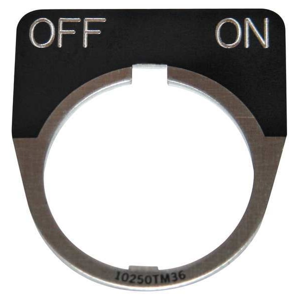 Legend Plate, Half-Round, Legend Off-On, For Use With 30.5mm Selector Switch and Roto-Push Operators, Legend/Background Color Black, Material Aluminum, Height 1.75 in, Width 1.75 in, Diameter 30 mm