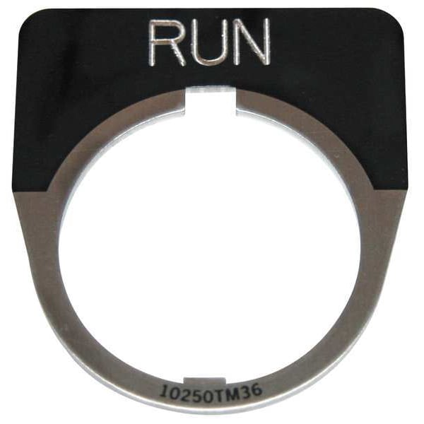 Legend Plate, Half-Round, Legend Run, For Use With 30.5mm Pushbutton Operators and Indicating Lights, Legend/Background Color Black, Material Aluminum, Height 1.75 in, Width 1.75 in, Diameter 30 mm