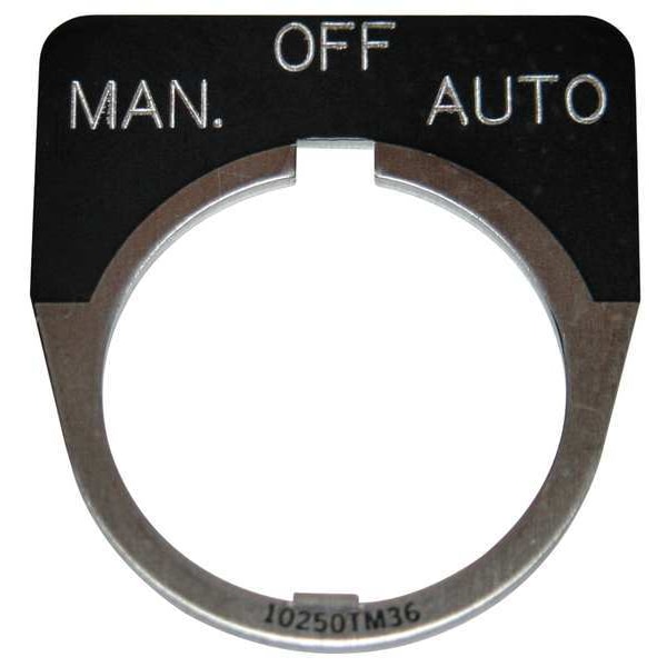 Legend Plate, Half-Round, Legend Man-Off-Auto, For Use With 30.5mm Selector Switch and Roto-Push Operators, Legend/Background Color Black, Material Aluminum, Height 1.75 in, Width 1.75 in, Diameter 30 mm