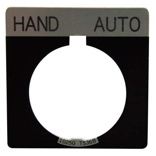 Legend Plate, Square, Legend Hand-Auto, For Use With 30.5mm Selector Switch and Roto-Push Operators, Legend/Background Color Black, Material Aluminum, Height 1.75 in, Width 1.75 in, Diameter 30 mm
