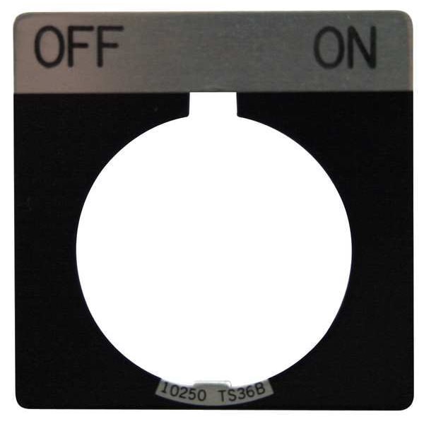 Legend Plate, Square, Legend Off-On, For Use With 30.5mm Selector Switch and Roto-Push Operators, Legend/Background Color Black, Material Aluminum, Height 1.75 in, Width 1.75 in, Diameter 30 mm