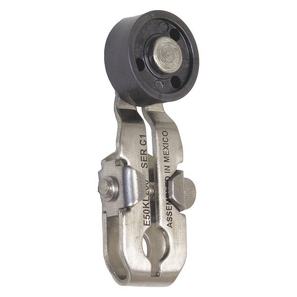 Limit Switch Lever Arm, Actuator Type Standard Roller, For Use With E50AR16P, Mfr. No. E50AR1, Arm Length 1.5 in, Roller Position Front, Roller Dia. 0.75 in, Roller Width 1 in, Arm Material Nylon, Roller Material Nylon, Arm Width 0.75 in, Arm Depth 2.22 in
