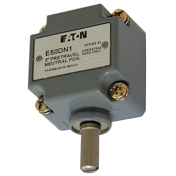 Limit Switch Head, Actuator Style Rotary Lever, Actuator Location Side, Actuator Length 0.2 in, Contact Form Not Applicable, Amps 10, Voltage Rating 600V AC, Travel Operating Travel 5 Degrees , Reset Travel 2 Degrees , Total Travel 90 Degrees , Movement Side, Operating Force 0.7 N, Operating Temp. 14 Degrees to 200 Degrees F, NEMA Rating 1, 12, 13, 2, 4, 4X, 6P, IP Rating IP67, Standards CSA, RoHS, UL Listed, For Use With Mfr. No. E50SA
