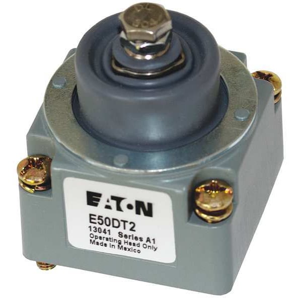Limit Switch Head, Actuator Style Push Roller Plunger, Actuator Location Top, Actuator Length 1.1 in, Contact Form Not Applicable, Amps 10, Voltage Rating 600V AC, Travel Operating Travel 0.04 in, Reset Travel 0.02 in, Total Travel 0.28 in, Movement Top, Operating Force 2.2 N, Operating Temp. 14 Degrees to 221 Degrees F, NEMA Rating 1, 12, 13, 2, 4, 4X, 6P, IP Rating IP67, Standards CSA, RoHS, UL Listed, For Use With Mfr. No. E50SA