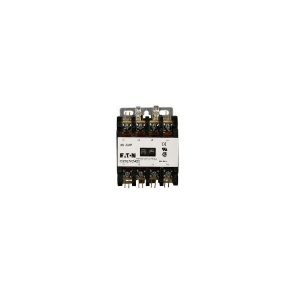 EATON DEFINITE PURPOSE CONTACTOR, QUICK, 25A, 110-120 VAC, 50/60 HZ, OPEN WITH METAL MOUNTING PLATE, 15-50A, TWO- AND THREE-POLE, 25A, CONTACTOR, FOUR-POLE, 25A, SCREW/PRESSURE PLATE, NON-REVERSING