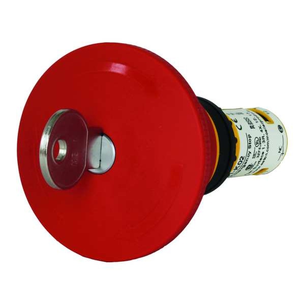 Emergency Stop Push Button, 22 mm, Maintained Push / Key Release Action, 60mm Mushroom Head Type of Operator, Head Material Polycarbonate, Contact Form 1NO/1NC, Bezel Silver Nylon, Color Red, Contact Rating 1.5A @ 230V AC, 3A @ 24V DC, NEMA Contact Rating Designation AC-15, DC-13, Number of Operators 1, NEMA Rating 1, 12, 13, 3, 4X, IP Rating IP66, Legend Not Applicable, Standards CCC, CE, CSA, IEC 60947, Lloyd's Register, RoHS, UL Listed, VDE 0660, Terminal Connection Screw Clamp
