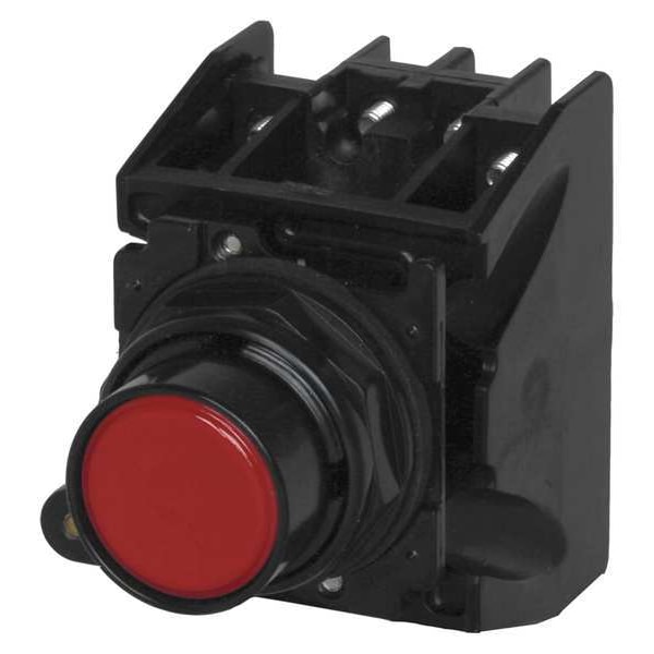 Hazardous Location Push Button, 30 mm, Momentary Action, Flush Push Button Type of Operator, Head Material Epoxy Coated Metal, Contact Form 1NO/1NC, Bezel Epoxy Coated/Chemical Resistant Metal, Color Red, Contact Rating 10A @ 600V AC, 2.5A @ 250V DC, NEMA Contact Rating Designation A600 and Q300, Number of Operators 1, NEMA Rating 12, 13, 3, 3R, 4, 4X, IP Rating IP65, Standards CE, CSA, FDA 3-A, UL 505, Terminal Connection Screw Clamp, Features Factory Sealed, Drainage Holes, Grounding Nibs