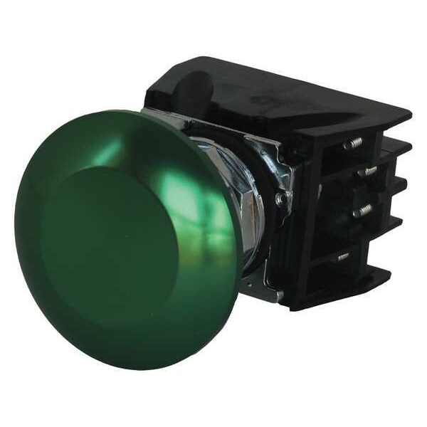 Hazardous Location Push Button, 30 mm, Momentary Action, Jumbo Mushroom Head Push Button Type of Operator, Head Material Metal, Contact Form 2NO/2NC, Bezel Metal, Color Green, Contact Rating 10A @ 600V AC, 2.5A @ 250V DC, NEMA Contact Rating Designation A600 and Q300, Number of Operators 1, NEMA Rating 12, 13, 3, 3R, 4, 4X, IP Rating IP65, Standards CE, CSA, UL Listed, Terminal Connection Screw Clamp, Features Factory Sealed, Drainage Holes, Grounding Nibs