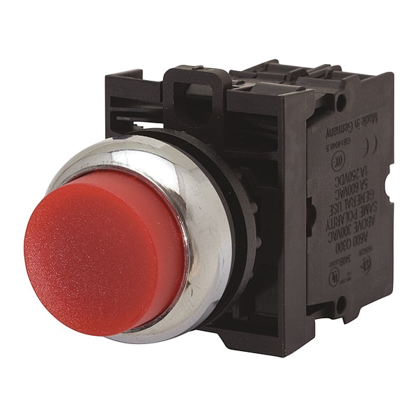 Extended Push Button, 22.5 mm, Momentary, Type of Operator Extended Button, Basic Material Plastic, Head Material Plastic, Bezel Material Silver, Color Red, NEMA Rating 4X,13, IP Rating IP67, IP69K, Legend Not Applicable, Standards Bureau Veritas, CCC, CE, CSA, GOST-R, Lloyd's Register, UL Listed, Features Field Convertible From Momentary to Maintained, Includes Contact Block Mounting Adapter