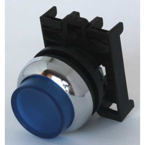 Flush Push Button, 22 mm, Momentary, Type of Operator Extended Button, Basic Material Metal, Head Material Plastic, Bezel Material Metal, Color Blue, NEMA Rating 1, 13, 2, 3, 4, 4X, IP Rating IP67, IP69K, Legend Not Applicable, Standards Bureau Veritas, CCC, CE, CSA, GOST-R, Lloyd's Register, UL Listed, Features Field Convertible From Momentary to Maintained, Includes Contact Block Mounting Adapter