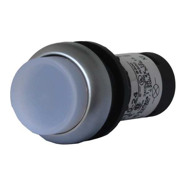 Illuminated Push Button, 22 mm, Maintained Action, Extended Button Type of Operator, Head Material Polycarbonate, Contact Form 1NO, Bezel Silver Coated Polycarbonate, Color White, Contact Rating 1.5A @ 230V AC, 3A @ 24V DC, NEMA Contact Rating Designation AC-15, DC-13, Number of Operators 1, NEMA Rating 1, 12, 13, 3, 4X, IP Rating IP67, IP69K, Standards CCC, CE, CSA, IEC 60947, Lloyd's Register, RoHS, UL Listed, VDE 0660, Terminal Connection Screw Clamp