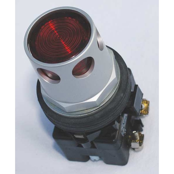 Illuminated Push Button, 30 mm, Momentary Action, Round Extended Guarded Button Type of Operator, Head Material Metal, Contact Form 2NO/2NC, Bezel Anodized Aluminum/Mounting Rings, Color Red, Contact Rating 10A @ 600V AC/DC, NEMA Contact Rating Designation A600/P600, Number of Operators 1, NEMA Rating 12, 13, 3, 3R, 4, 4X, IP Rating IP65, Standards CE, CSA, UL Listed, Terminal Connection Screw Clamp, Features Allen-Bradley Pushbutton Panel Compatible, Includes Lamp