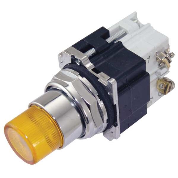 Illuminated Push Button, 30 mm, Momentary Action, Round Button Type of Operator, Head Material Metal, Contact Form 1NO, Bezel Chrome Plated Zinc Die Cast, Color Yellow, Contact Rating 10A @ 600V AC/DC, Number of Operators 1, NEMA Rating 12, 13, 3, 3R, 4, 4X, IP Rating IP65, Standards CE, CSA, UL Listed, Terminal Connection Screw Clamp, Features Diaphragm Seals, Drainage Holes, Enclosed Silver Contacts, Grounding Nibs, Reliability Nibs, Includes Operator, Light Module, Contact Block