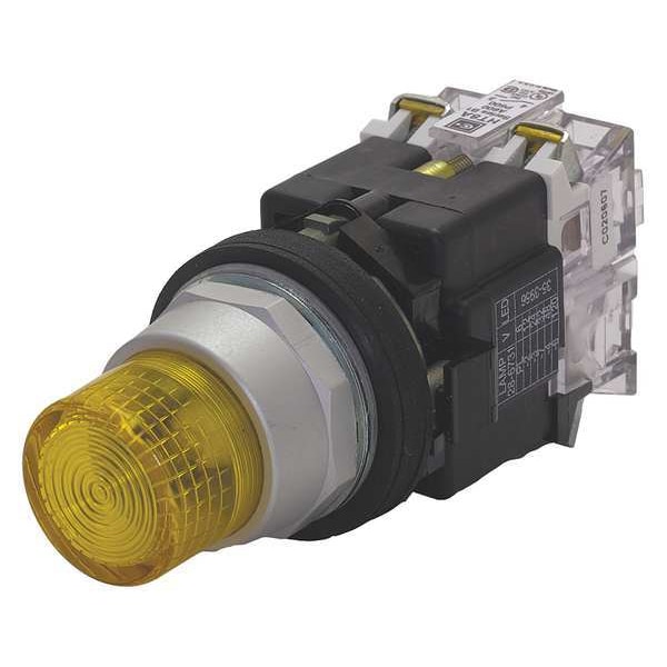 Illuminated Push Button, 30 mm, Momentary Action, Round Button Type of Operator, Head Material Metal, Contact Form 1NO, Bezel Anodized Aluminum/Mounting Rings, Color Yellow, Contact Rating 10A @ 600V AC/DC, NEMA Contact Rating Designation A600/P600, Number of Operators 1, NEMA Rating 12, 13, 3, 3R, 4, 4X, IP Rating IP65, Standards CSA, UL Listed, Terminal Connection Screw Clamp, Features Allen-Bradley Pushbutton Panel Compatible