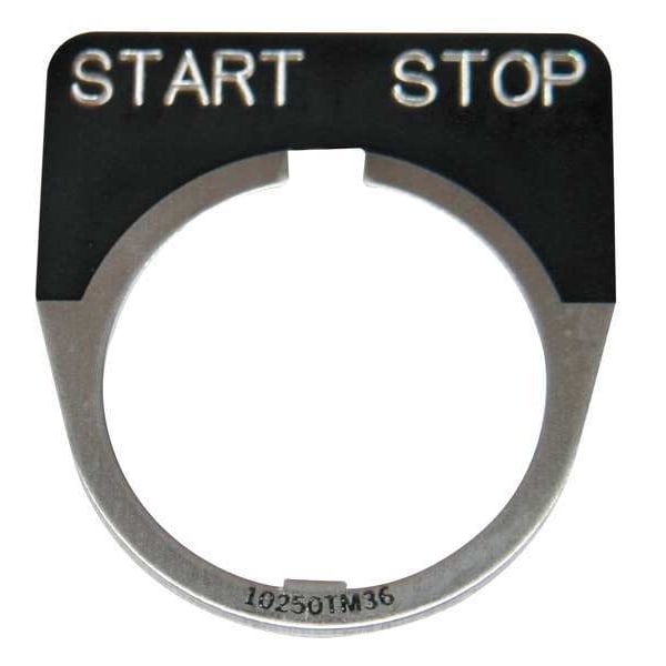 Legend Plate, Half-Round, Legend Start-Stop, For Use With 30.5mm Selector Switch and Roto-Push Operators, Legend/Background Color Black, Material Aluminum, Height 1.75 in, Width 1.75 in, Diameter 30 mm